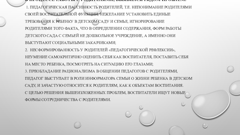 Слайд 6В ПРОЦЕССЕ РАБОТЫ С РОДИТЕЛЯМИ, ВЫЯВИЛСЯ РЯДОМ ПРОБЛЕМ: