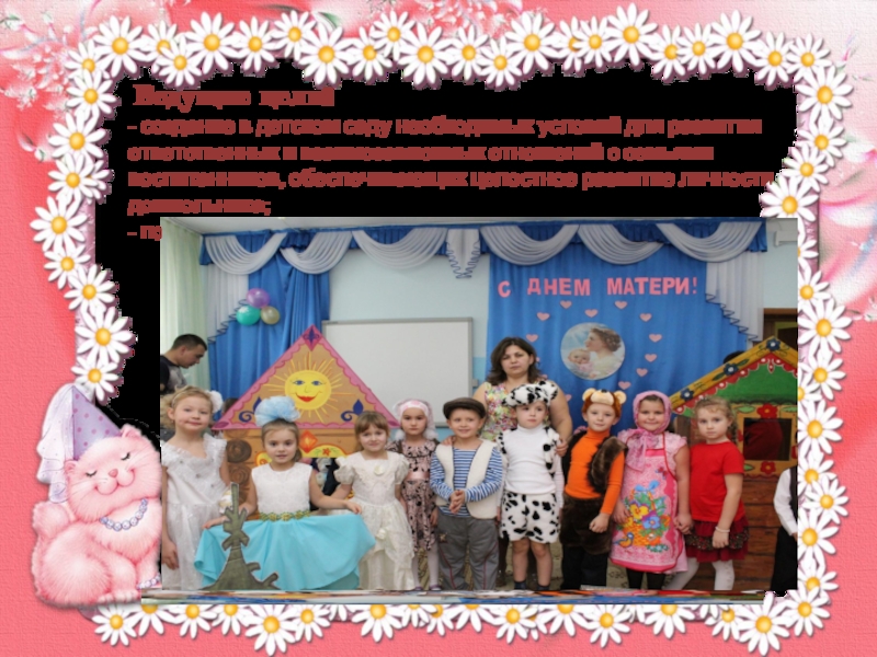 развития ответственных и взаимозависимых отношений с семьями воспитанников, обеспечивающих целостное развитие личности дошкольника;