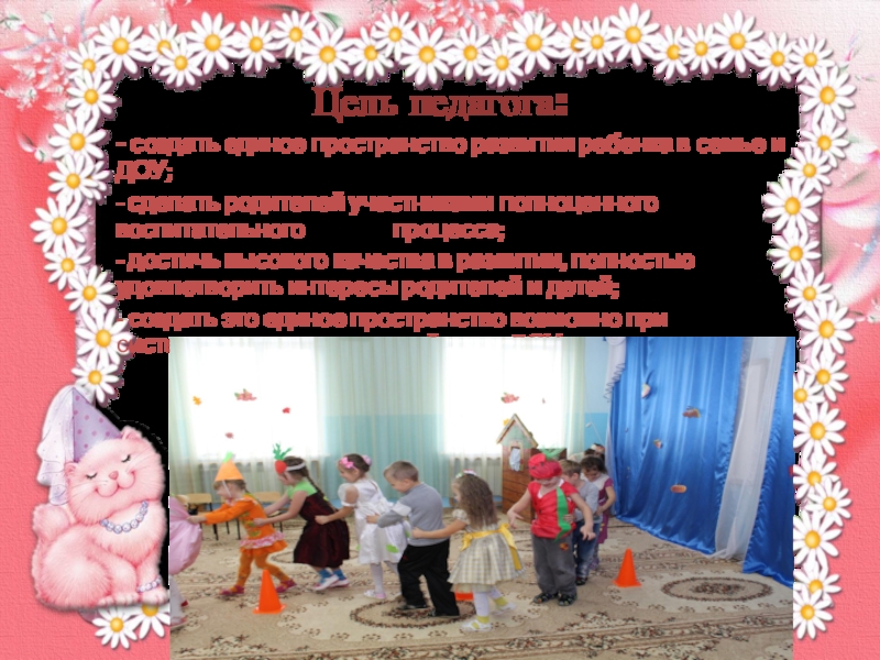 Цель: – активное вовлечение родителей в творческий процесс развития
