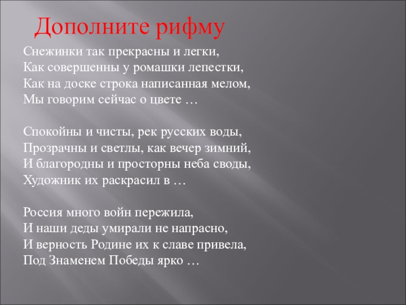 Дополните рифму