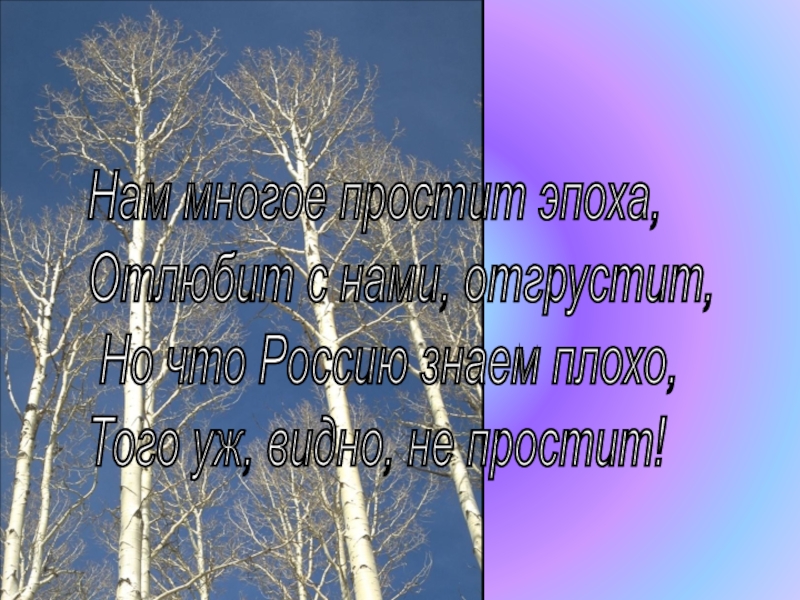 Нам многое простит эпоха,  Отлюбит с нами, отгрустит,   Но что Россию знаем плохо,
