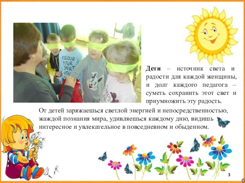 От детей заряжаешься светлой энергией и непосредственностью, жаждой познания мира, удивляешься каждому дню, видишь интересное и увлекательное в повседневном и обыденном.