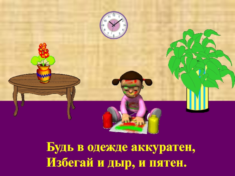 Будь в одежде аккуратен,Избегай и дыр, и пятен.