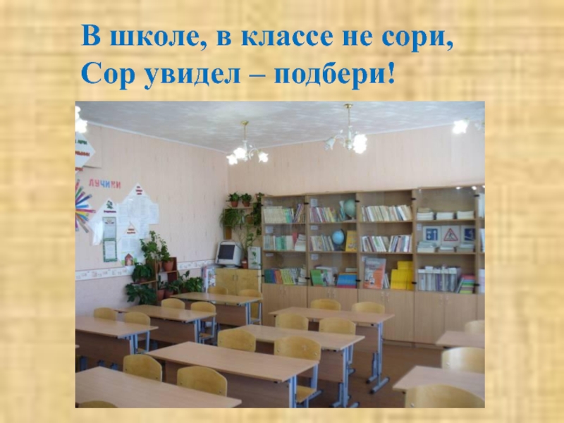 В школе, в классе не сори,Сор увидел – подбери!