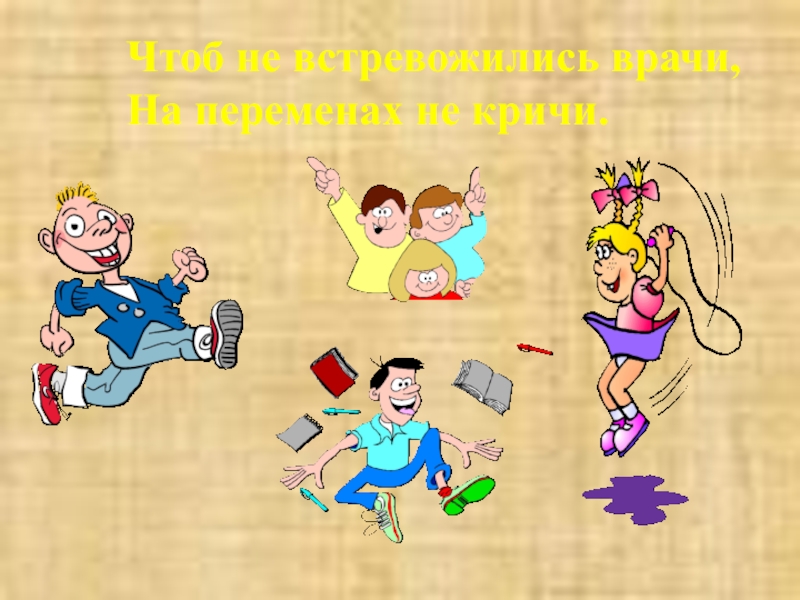 Чтоб не встревожились врачи,На переменах не кричи.