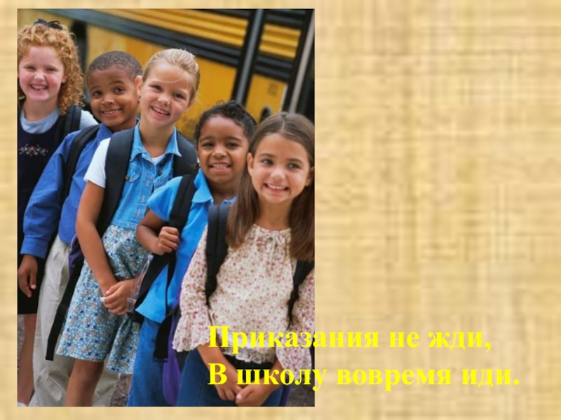 Приказания не жди,В школу вовремя иди.