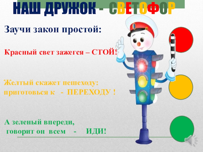 Желтый скажет пешеходу: приготовься к - ПЕРЕХОДУ !