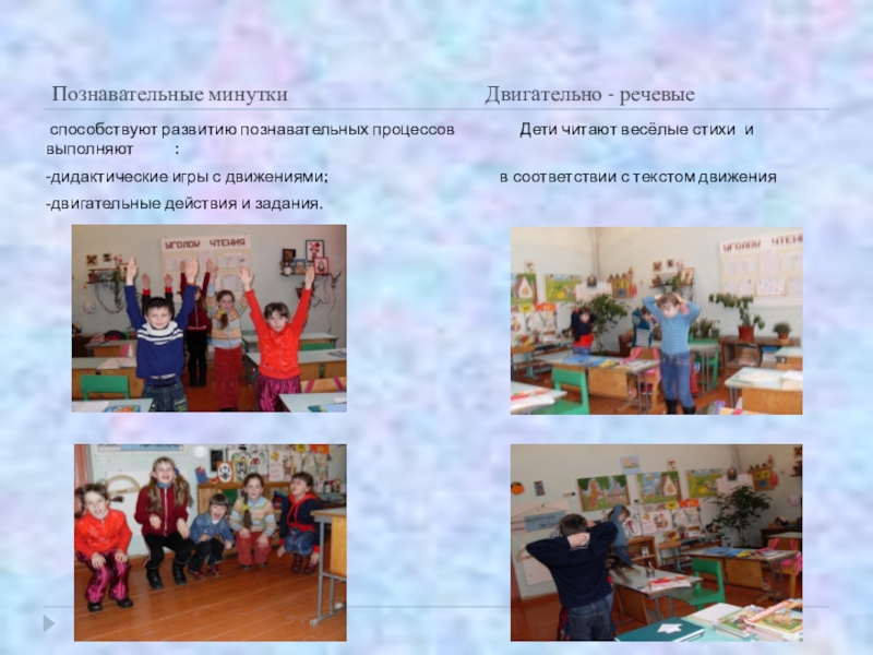 способствуют развитию познавательных процессов Дети читают весёлые стихи и выполняют :