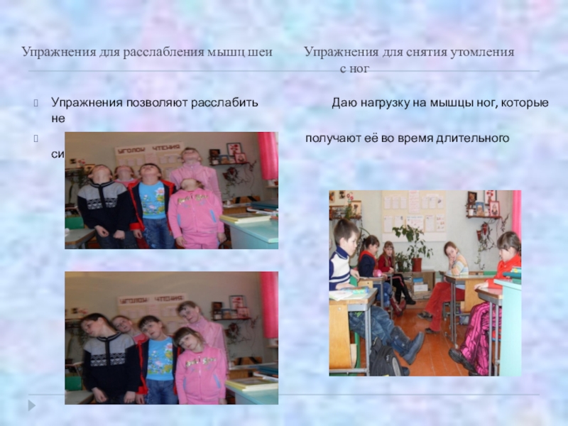 Слайд 10Упражнения для снятия утомления с плечевого пояса и рук