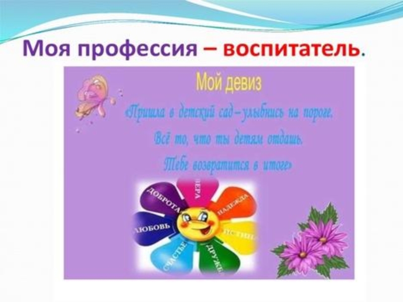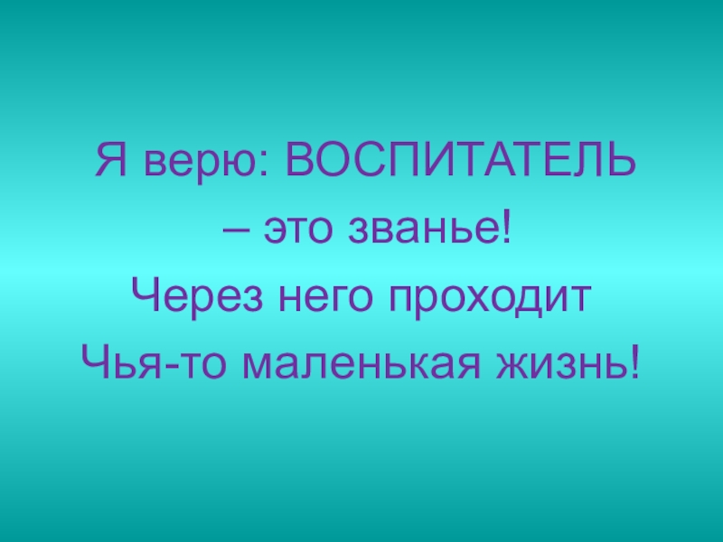 Я верю: ВОСПИТАТЕЛЬ – это званье!Через него проходит Чья-то маленькая жизнь!
