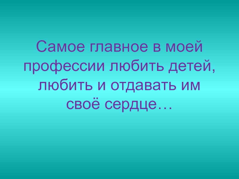 Слайд 12Самое главное в моей профессии любить детей, любить и отдавать им