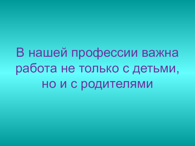 Слайд 24 В нашей профессии важна работа не только с детьми, но и