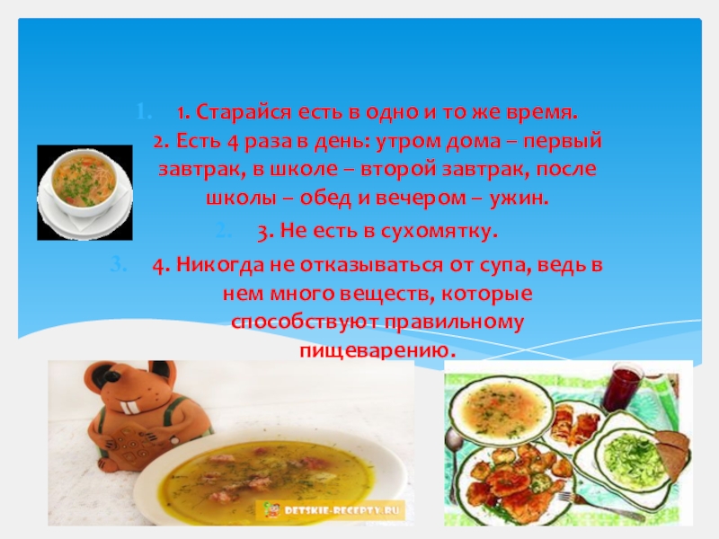Слайд 111. Старайся есть в одно и то же время.
