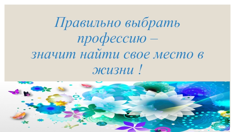 Правильно выбрать профессию –  значит найти свое место в жизни !