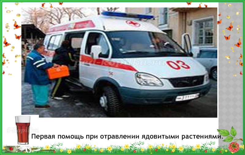 Слайд 4Первая помощь при отравлении ядовитыми растениями.