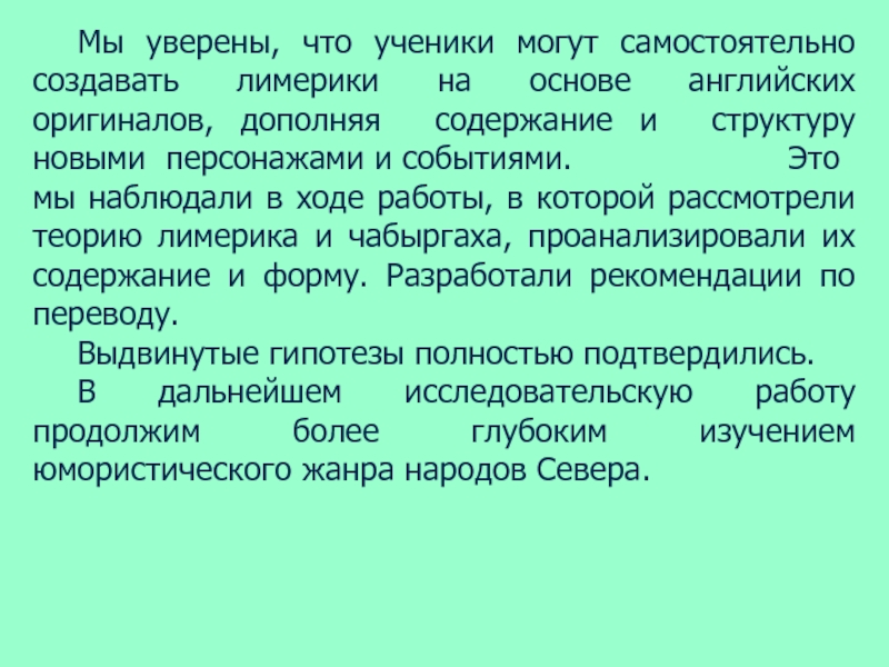 Слайд 17Мы уверены, что ученики могут самостоятельно создавать лимерики на основе английских