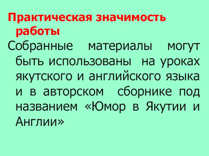 английского языка и в авторском сборнике под названием «Юмор в Якутии и Англии»
