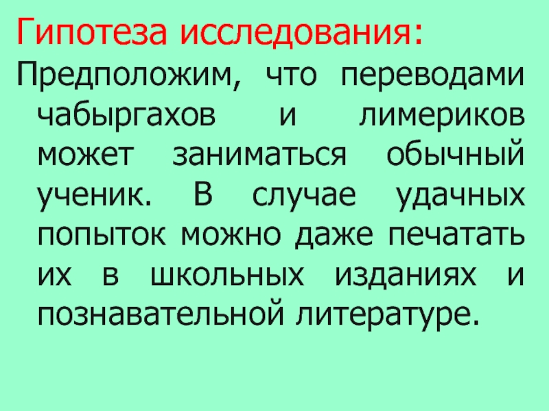 Предположим, что переводами чабыргахов и лимериков может заниматься обычный ученик.