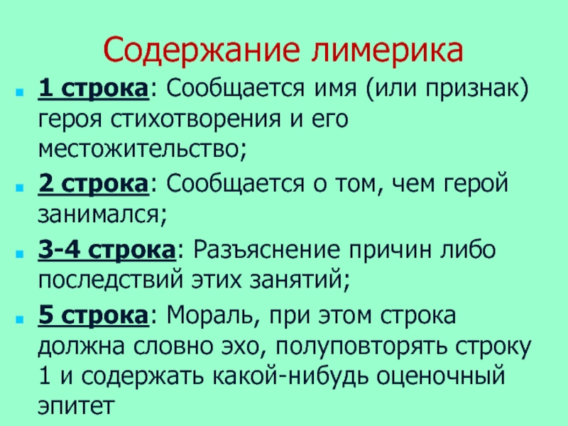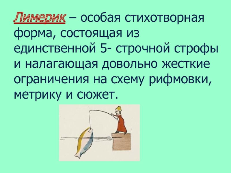 Слайд 8Лимерик – особая стихотворная форма, состоящая из единственной 5- строчной строфы