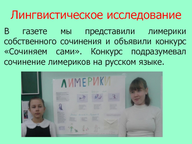 «Сочиняем сами». Конкурс подразумевал сочинение лимериков на русском языке.