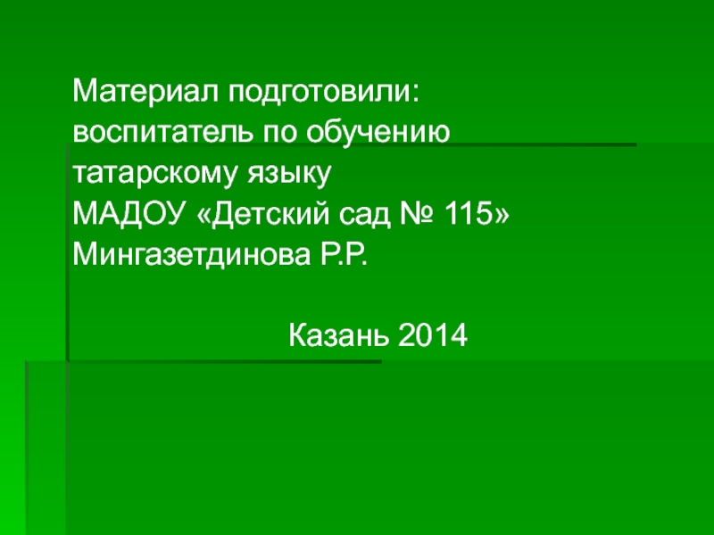 Материал подготовили:воспитатель по обучению татарскому языку МАДОУ «Детский сад № 115» Мингазетдинова Р.Р.Казань 2014