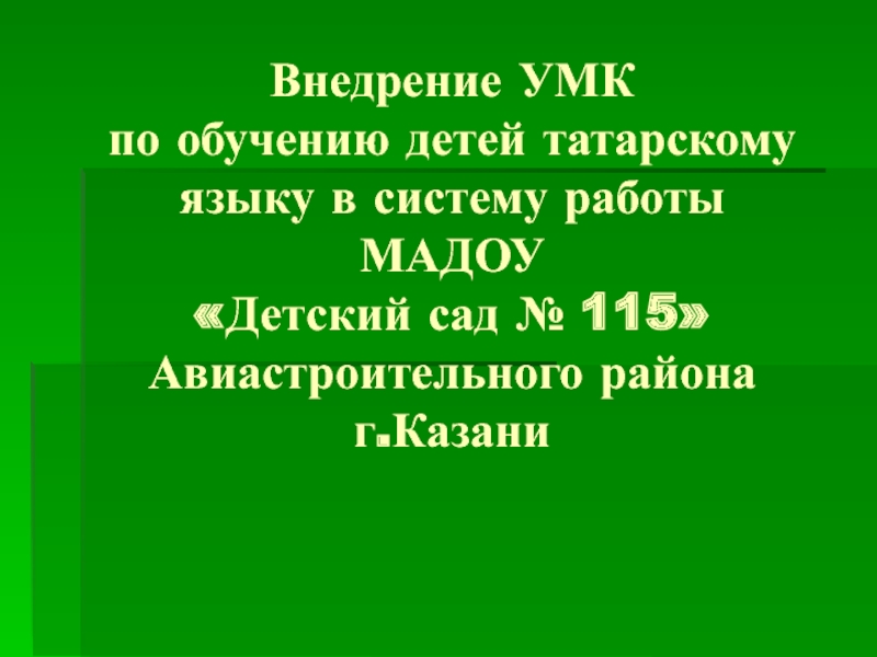 Внедрение УМК  по обучению детей татарскому языку в систему работы  МАДОУ  «Детский сад №