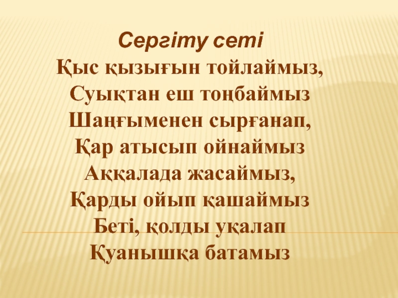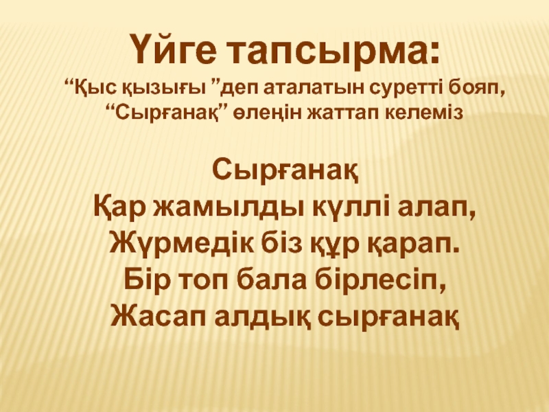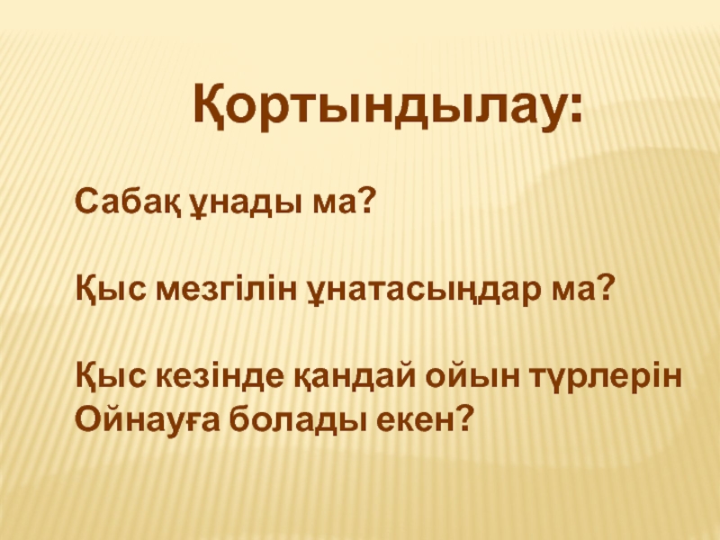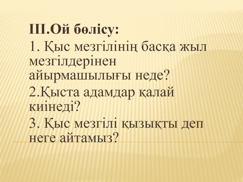 толықтыру, қыс қызығы туралы әңгімелеп айтуға баулу.Қыс айының кереметтерін түйсіндіру, ойлау қабілеттерін, сөйлеу тілдерін дамыту. Табиғат көрінісін сипаттап,қызықтарын әңгімелету арқылы балалардың шығармашылық қабілеттерін жетілдіру.Өзара сыйласымдылыққа, адамгершілікке тәрбиелеу