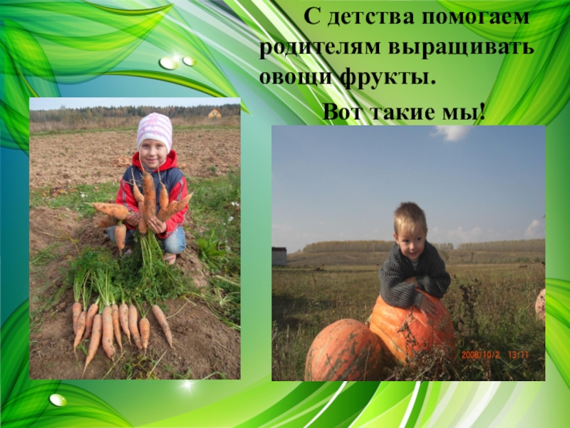 С детства помогаем родителям выращивать овощи фрукты. Вот такие мы!
