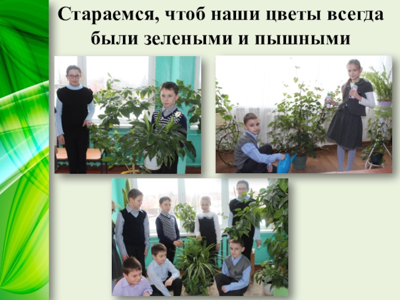 Слайд 4Стараемся, чтоб наши цветы всегда были зелеными и пышными