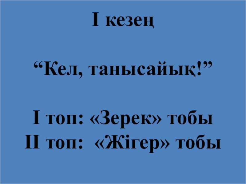 І кезең  “Кел, танысайық!”  І топ: «Зерек» тобы ІІ топ:  «Жігер» тобы