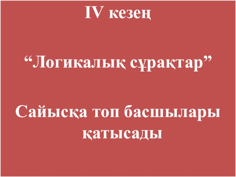 IV кезең“Логикалық сұрақтар”Сайысқа топ басшылары қатысады