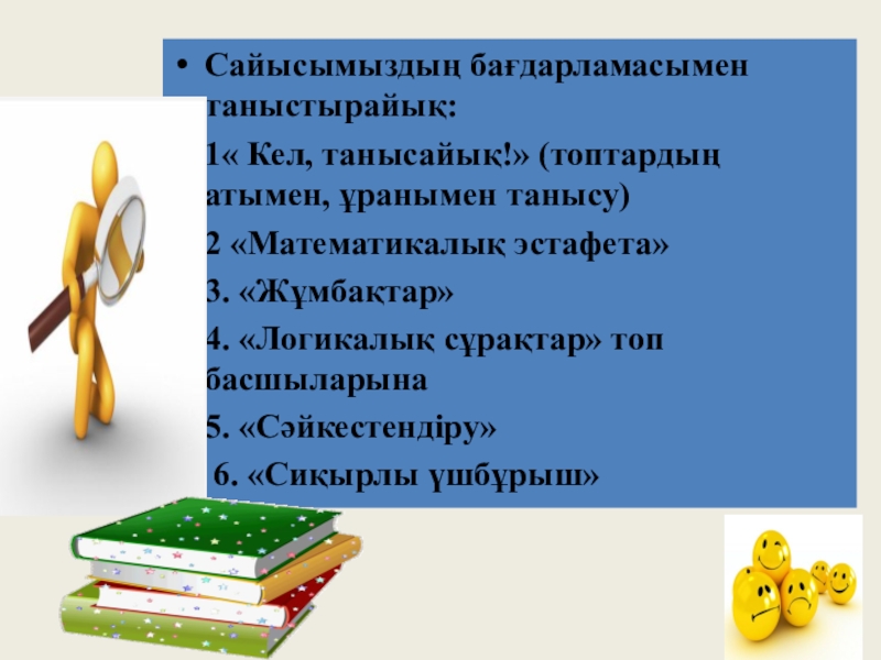 Слайд 4Сайысымыздың бағдарламасымен таныстырайық: