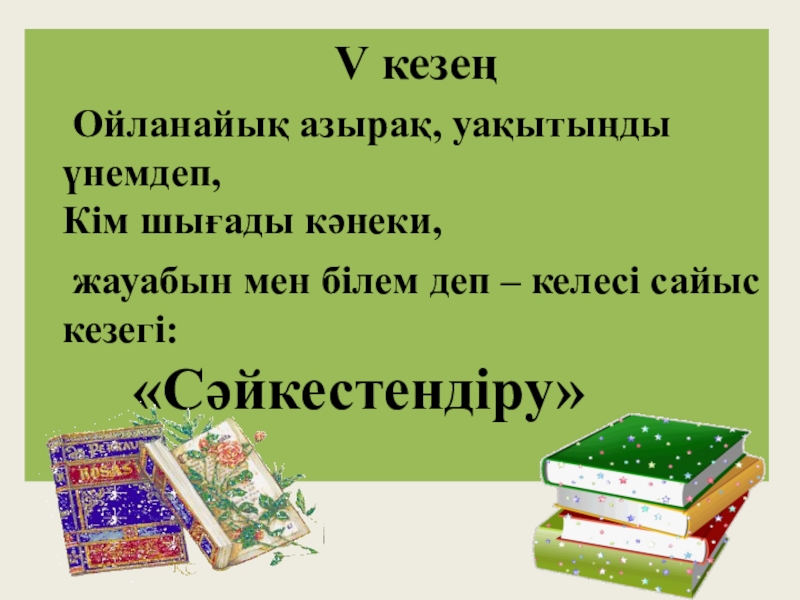 V кезең   Ойланайық азырақ, уақытыңды үнемдеп, Кім шығады кәнеки,   жауабын