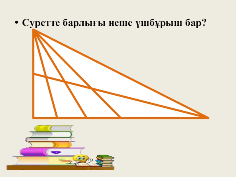 Слайд 20Суретте барлығы неше үшбұрыш бар?