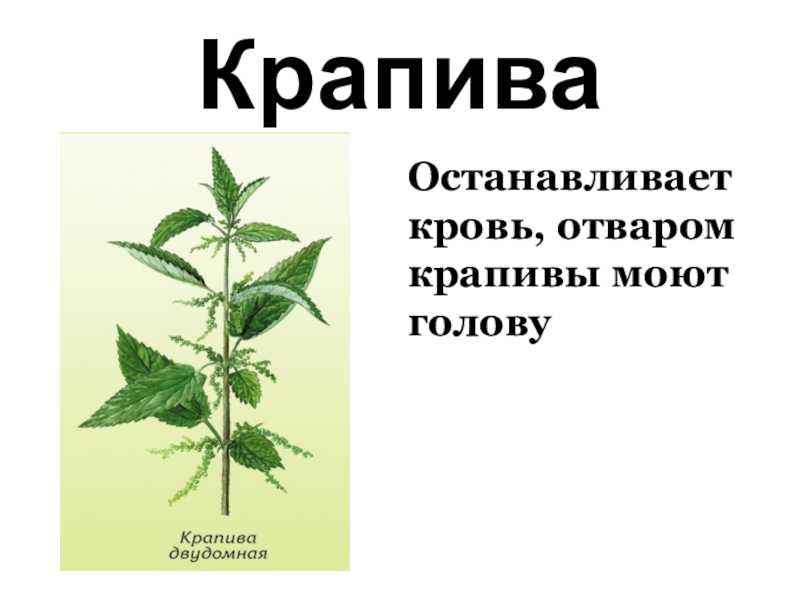Крапива Останавливает кровь, отваром крапивы моют голову