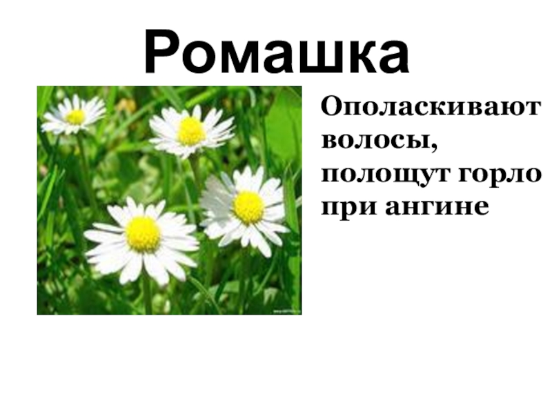 РомашкаОполаскивают волосы, полощут горло при ангине