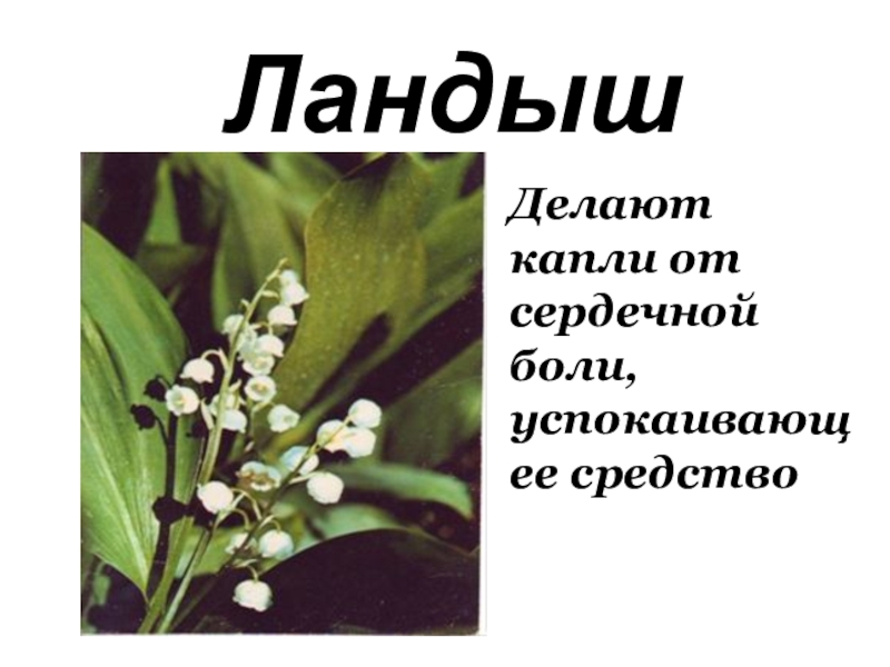 Ландыш  Делают капли от сердечной боли, успокаивающее средство