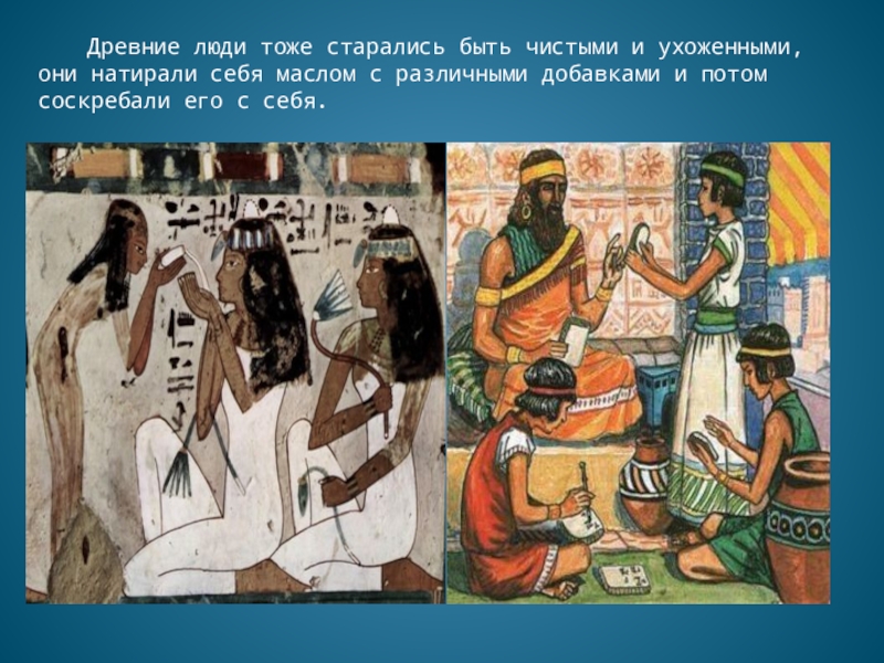и ухоженными, они натирали себя маслом с различными добавками и потом соскребали его с себя.