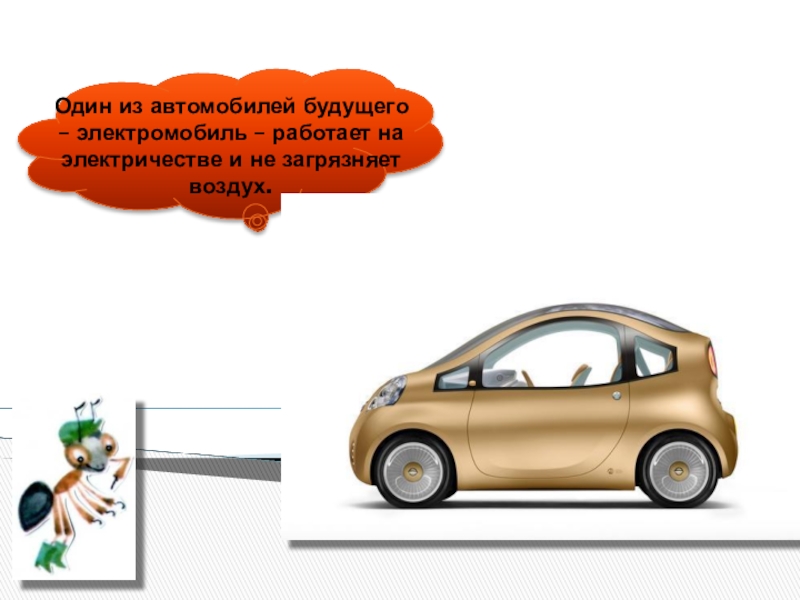 Один из автомобилей будущего – электромобиль – работает на электричестве и не загрязняет воздух.