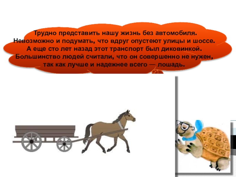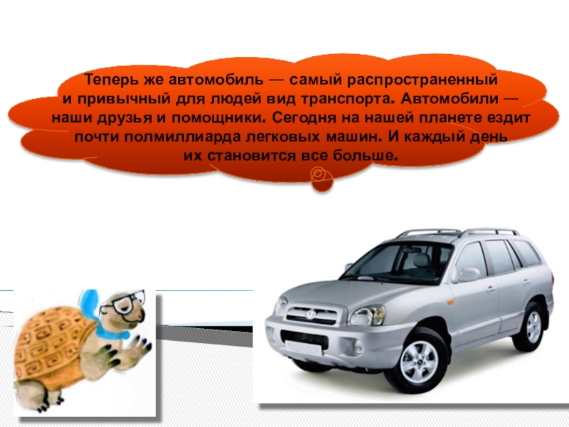 Теперь же автомобиль — самый распространенный и привычный для людей вид транспорта. Автомобили — наши друзья и