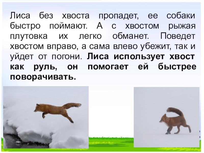 Слайд 14Лиса без хвоста пропадет, ее собаки быстро поймают. А с хвостом