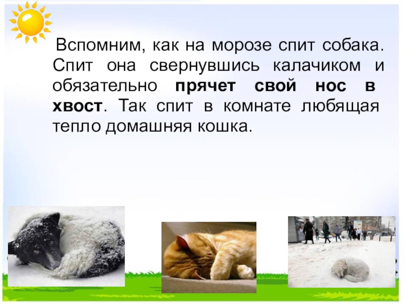 Слайд 32 Вспомним, как на морозе спит собака.