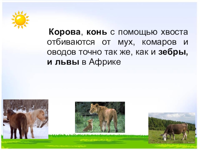 Слайд 26 Корова, конь с помощью хвоста отбиваются от мух, комаров и