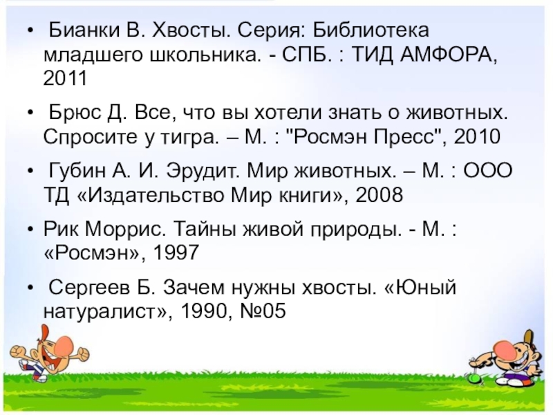 Слайд 42 Бианки В. Хвосты. Серия: Библиотека младшего школьника. - СПБ. : ТИД