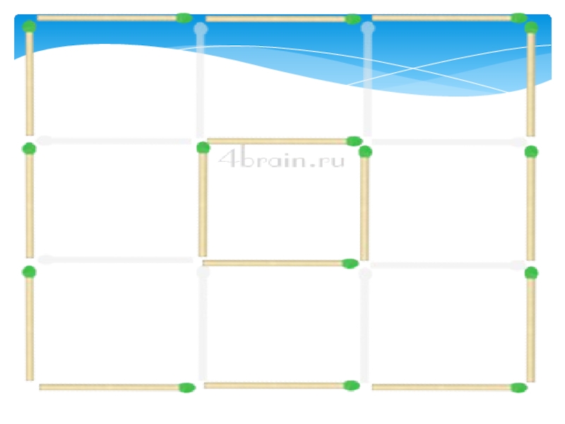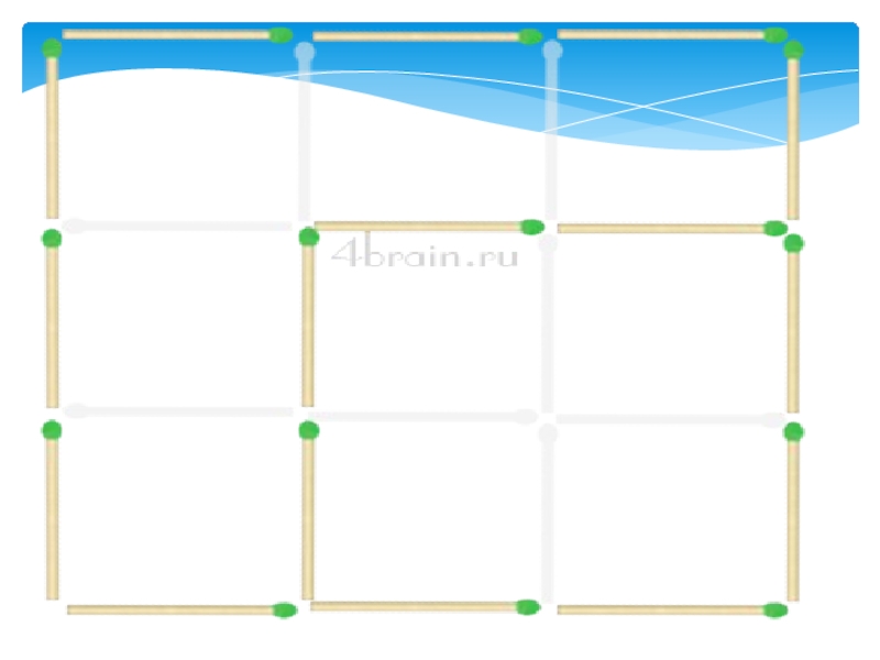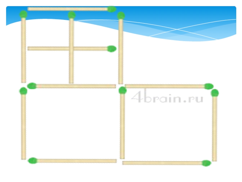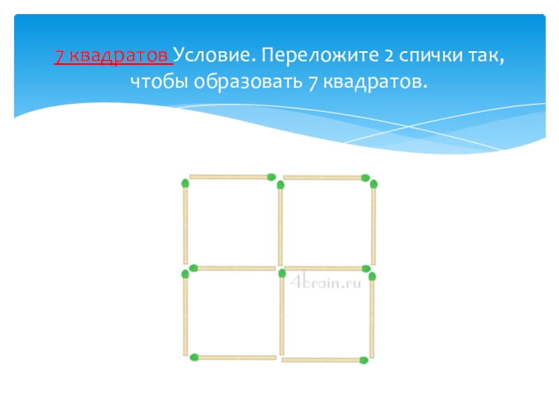 Слайд 137 квадратов Условие. Переложите 2 спички так, чтобы образовать 7 квадратов.