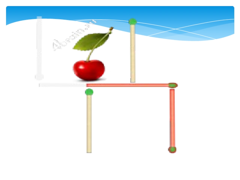 Головоломка «бокал с вишенкой» Условие. С помощью четырех спичек сложена форма бокала, внутри которого лежит вишня. Нужно