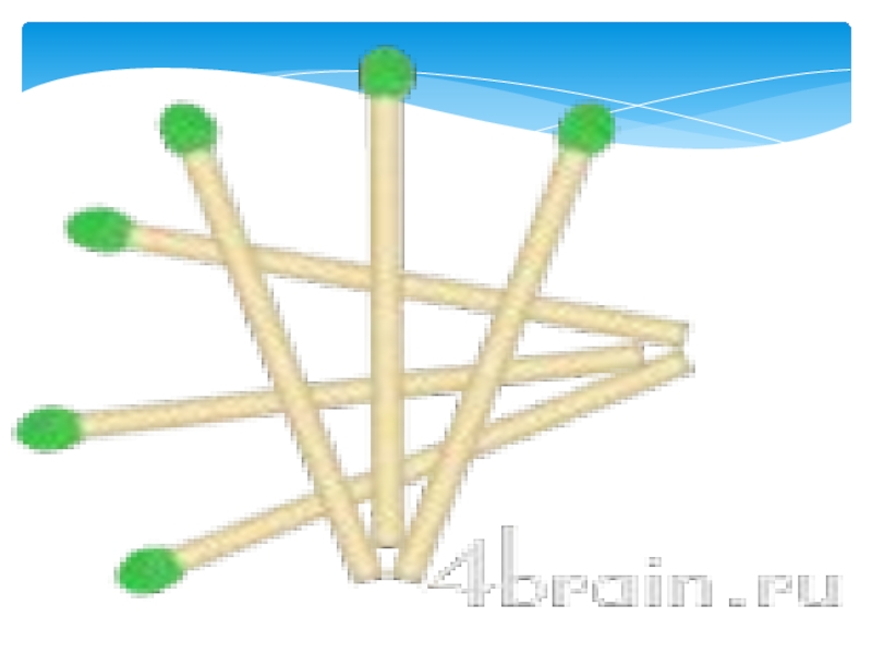 Соприкасающиеся друг с другом спички Задание. Необходимо разместить 6 спичек так, чтобы каждая спичка соприкасалась с остальными