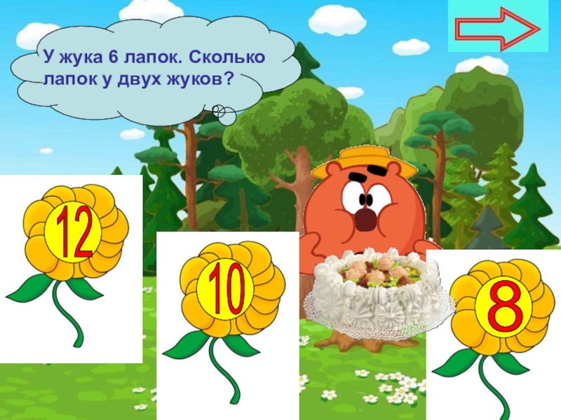 У жука 6 лапок. Сколько лапок у двух жуков?