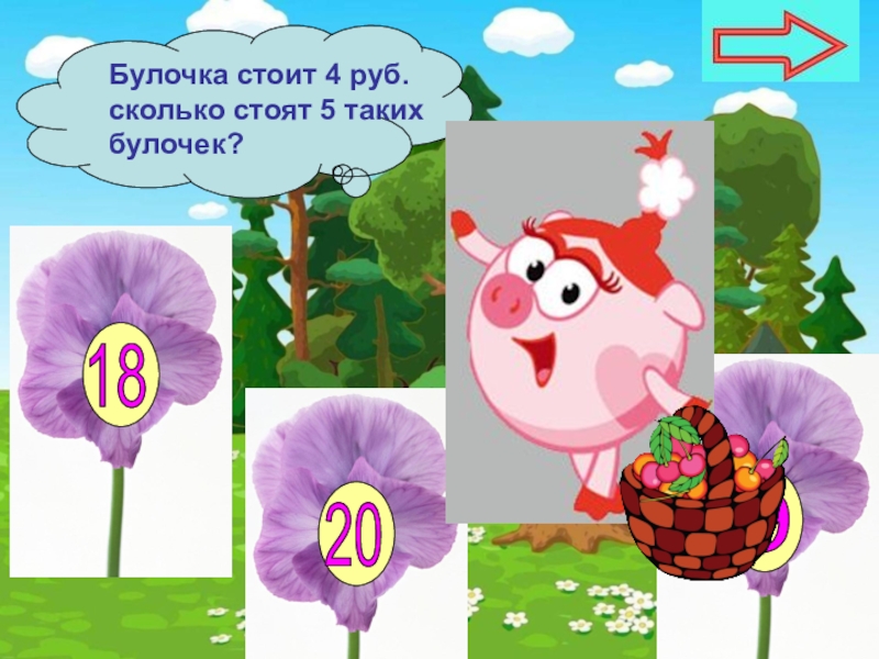 Булочка стоит 4 руб. сколько стоят 5 таких булочек?
