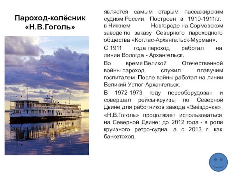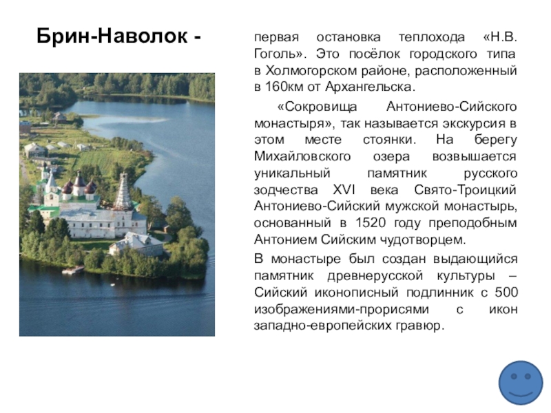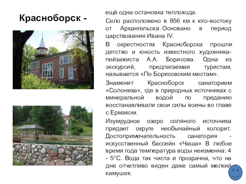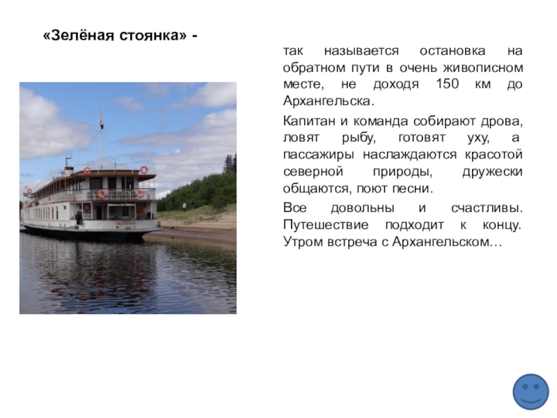 Северная Двина славится спокойным, не быстрым течением. Судоходна. На реке много островов.